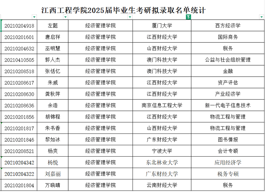 经济办理学院是江西工程学院成立较早、声誉较佳、具有专业特色的二级学院之一。现设有财政办理、电子商务、金融工程、人力资本办理、商业经济、跨境电子商务6个本科专业以及电子商务、大数据取会计2个专科专业,现有正在校生2000余人。正在学校董事会、党委、行政的准确带领下,通过全院师生的不懈勤奋,学院办学规模逐年扩大、办学前提不竭改善、办学质量稳步提高。学院对接财产成长趋向,办事处所经济成长,建立了“二能三融四新”的人才培育模式,即(二能:实践脱手能力,立异创业能力;三融:产教融合、学职融合、专创融合;四新:新文科,新思维,新,新手艺),培育输送各类人才15000多名,此中有全国“优良党务工做者”欧敏、“全国十佳大学生村官村平易近贴心人”程广京、“江西工程学院正在校生创业首富”廖武林等浩繁优良结业生,学院近5年持续被评为“就业先辈工做单元”,就业对劲度达90%以上。