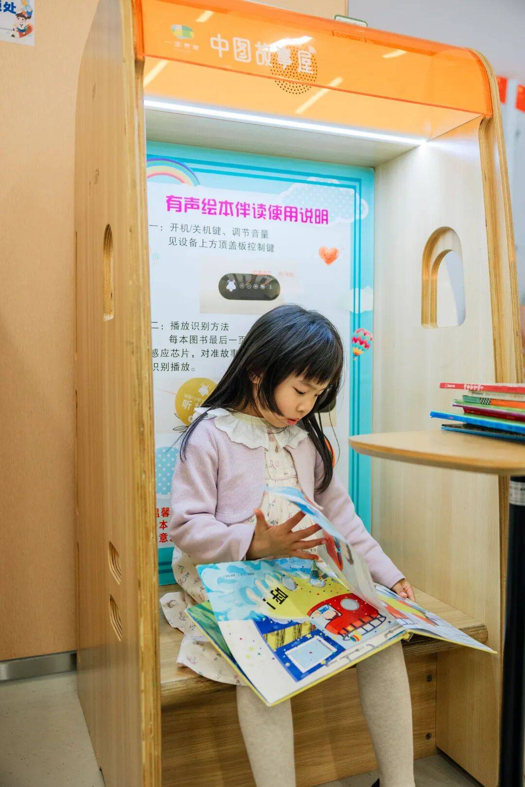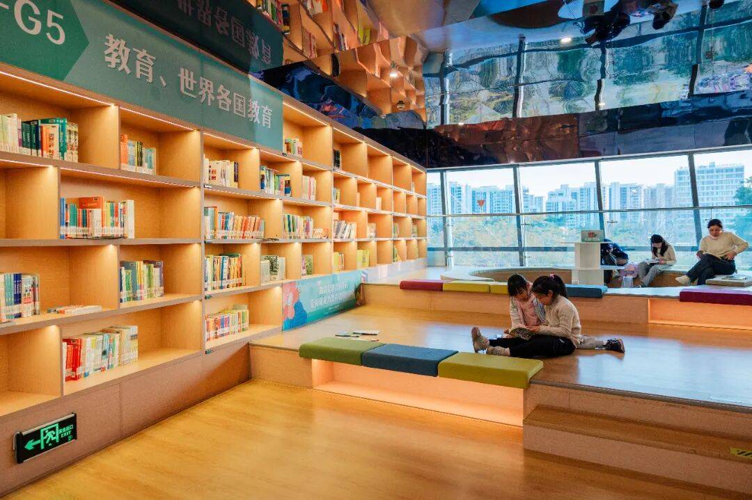 一楼适合低龄小伴侣,多彩绘本讲述着奇奥的童话故事,阅读小屋的软垫上,总围坐着认实听故事的孩子,正在玩乐中接收学问。